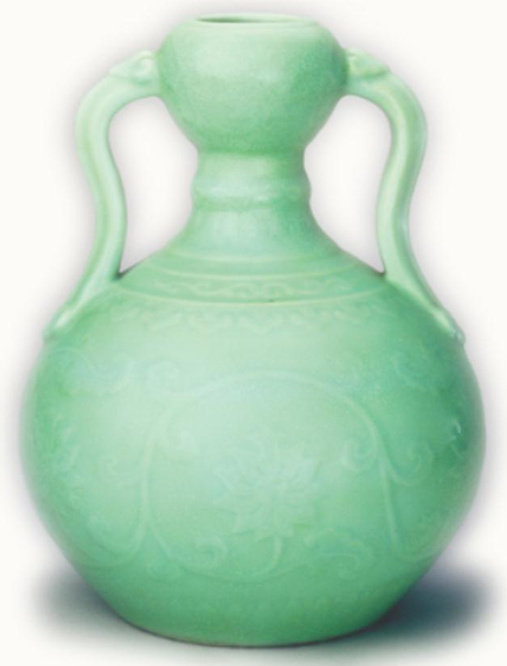 雍正款葱绿釉绶带耳瓶