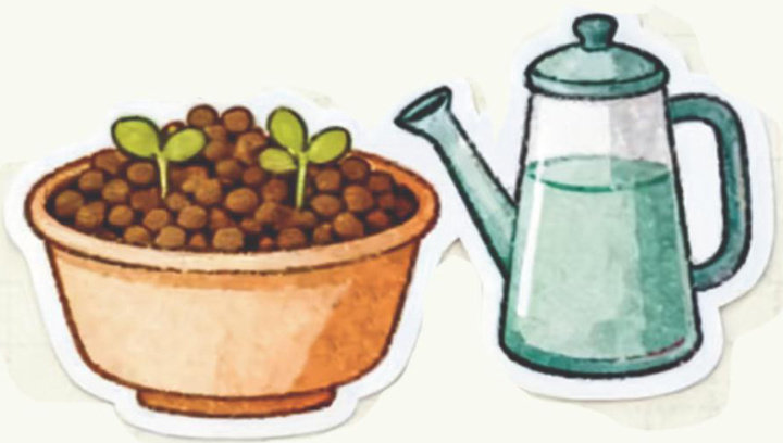 把豌豆种子放入 30~35∘C 的温水中浸泡 6~8 小时,浸泡期间更换2次水。浸泡完成后,捞出豌豆种子并沥干水分。