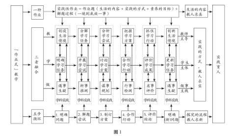 依据《义务教育课程方案(2022年版)》对学科育人的要求,我们从生活的内容、实践的方式、探究的流程三个方面,开展“作业式”教学探索。该教学范式(图1)以“一种作业”(即联结生活的实践性作业)为教学内容,以“三者融合”(即“教学做合一”的学科实践)为教学方式,以“五步循环”(即一个或多个连续的“五步探究”)为教学流程。(剩余4233字)