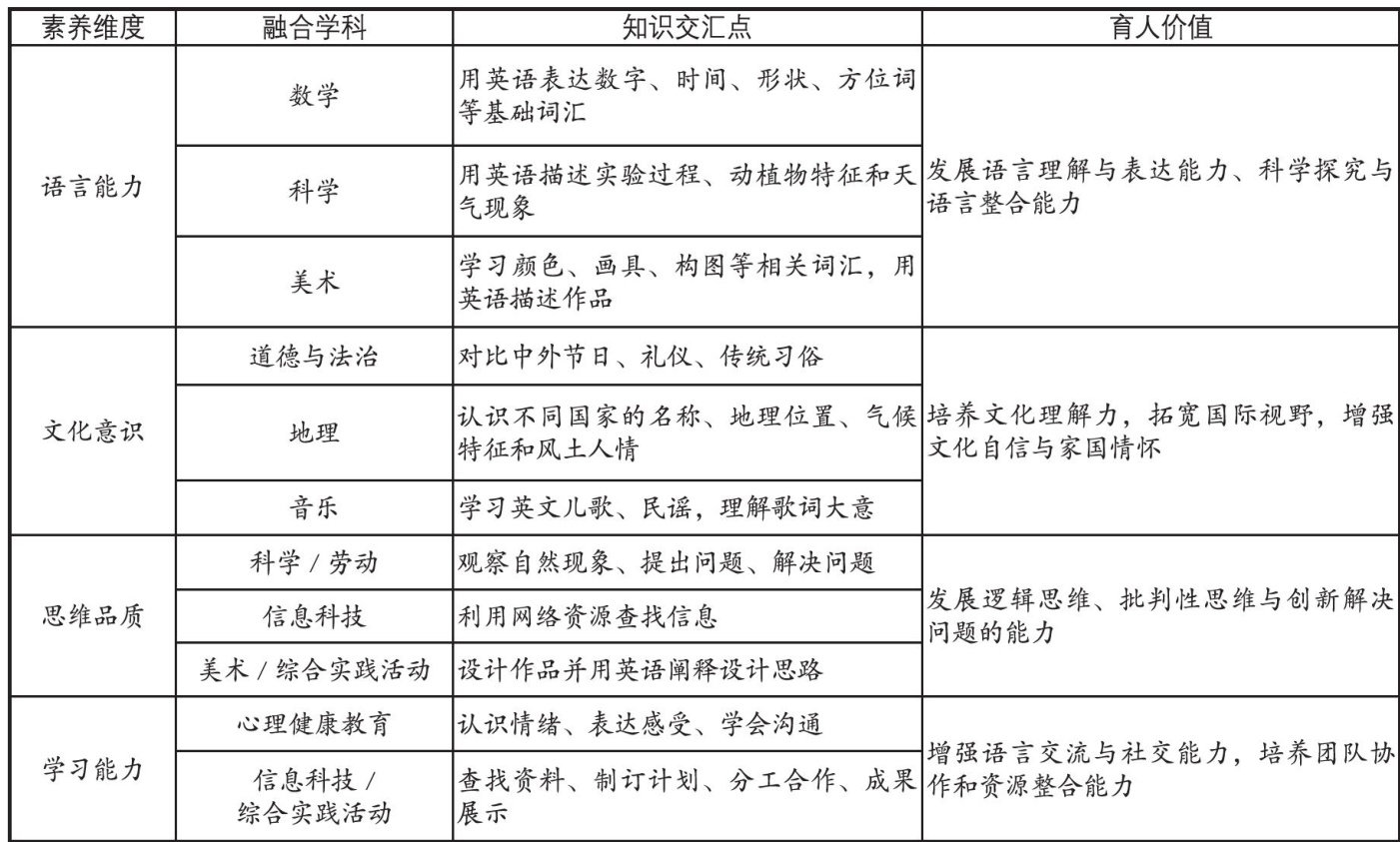 《义务教育课程方案(2022年版)》指出,要设立跨学科主题学习活动,加强学科间相互关联,带动课程综合化实施。《义务教育英语课程标准(2022年版)》(以下简称“新课标”)则强调,要运用其他相关课程的知识开展英语综合实践活动,促进学生核心素养的全面发展。当前小学英语跨学科教学普遍存在资源零散、整合生硬、评价单一等问题,亟须建立系统化的资源建设与实施策略体系。(剩余3813字)