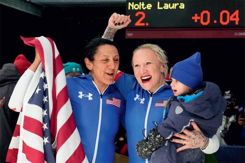 泰勒(左)与汉弗莱斯(中)获得米兰冬奥会女子雪车比赛冠军和季军。