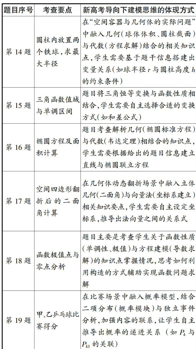 随着新高考改革的深入推进,高中数学面临新的挑战与发展机遇。2025年全国新高考数学Ⅱ卷作为新课标理念的重要载体,在命题思路上展现出“基础 + 综合 + 创新"的特点,同时在内容设置上进一步强化了对学生核心素养的考查,其中,数学建模能力培养成为当前教学改革的重要方向之一。数学建模作为六大核心素养之一,不仅深化了学生对数学问题本质的理解,还是链接数学知识与现实世界的重要桥梁。(剩余4490字)