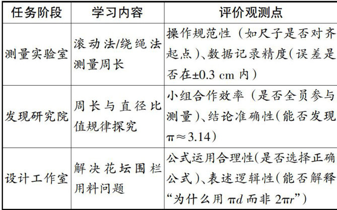 针对“圆的周长”,课标要求通过操作活动理解圆周率意义,掌握周长计算公式,因此,教师需设计贯穿教学全过程的实践性评价任务。(剩余5301字)