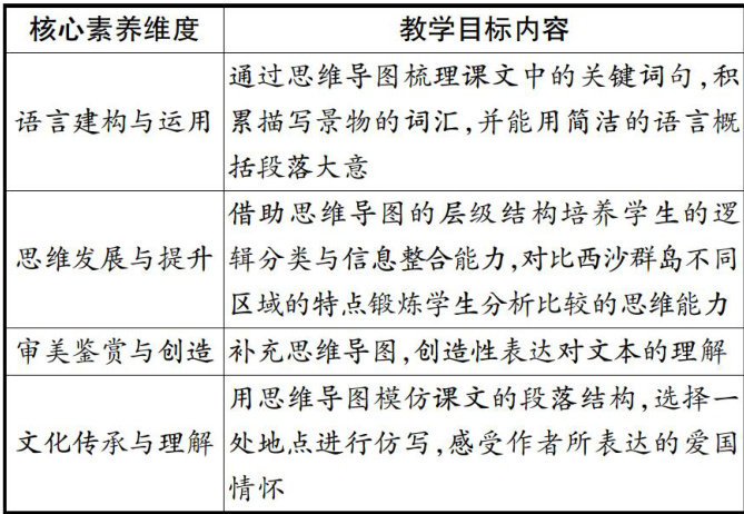 在素质教育深入推进的过程中,以核心素养培养为导向,概括能力作为信息提取、逻辑整合与抽象表达的复合思维能力,是第二学段(中年级)阅读教学的关键目标。思维导图因其可视化层级结构与放射性思维承载特性,为小学语文教学提供了新路径。以小学语文三年级上册《富饶的西沙群岛》第二课时为例,教师从工具赋能、策略创新等视角,将思维导图从“知识展示器"转化为“思维脚手架”,引导学生实现“原始信息-关键词提炼-范畴整合 -结构建模"的认知跃迁,同时在课时设计中嵌套“分析教材定靶点-分层引导建阶梯-迭代修订促反思”三重策略,使概括能力生长可操作、可观测。(剩余4729字)