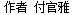 付官雅,湖南省作家协会教师作家分会会员,湖南省作家协会生态文学分会会员,张家界市永定区文艺评论家协会常务副主席。诗文作品散见于《欧洲诗人》《香港文艺报》《湖南文学》《湖南诗人》《北极光》《张家界日报》等报刊。
