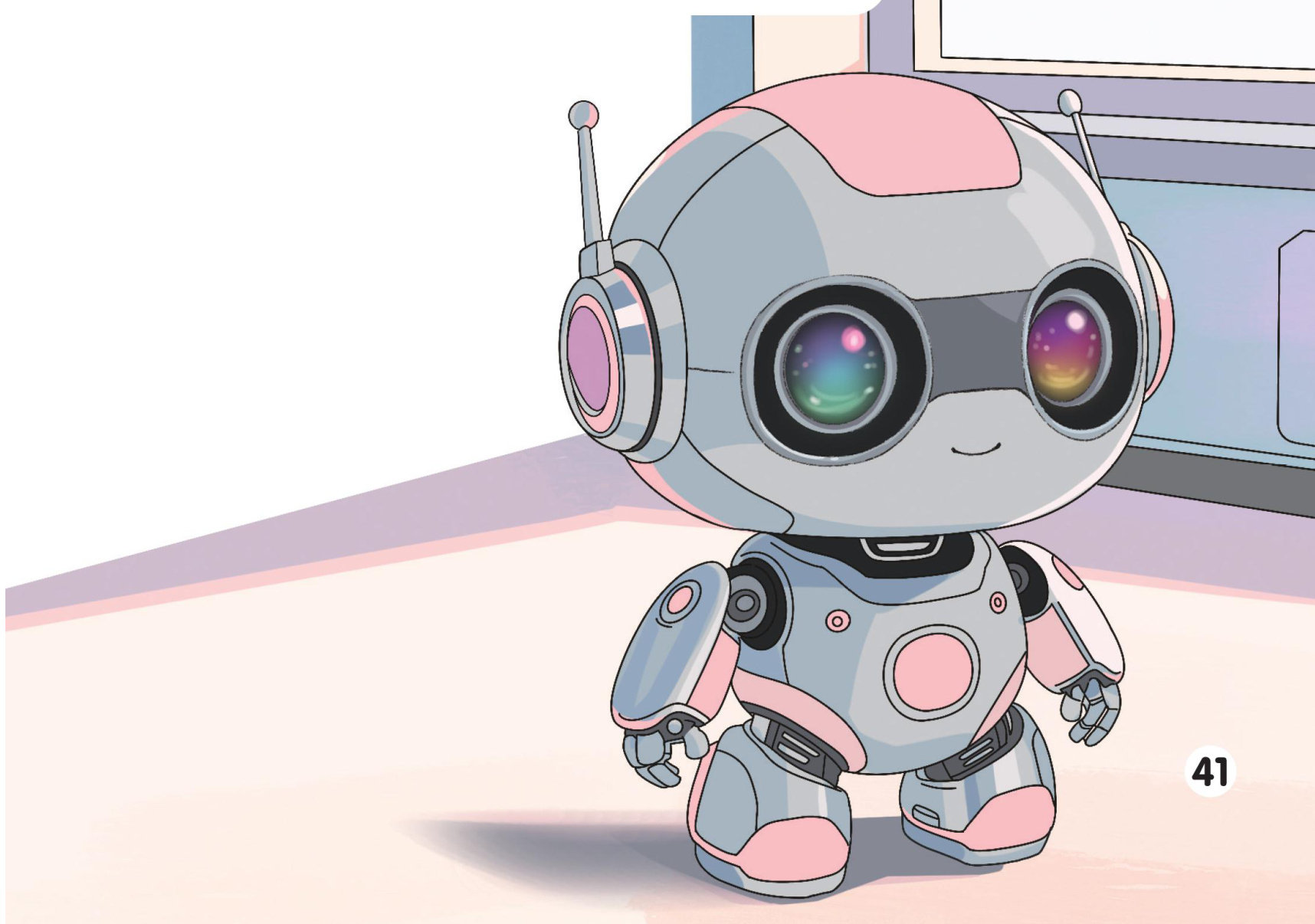 小沈的外形设计精巧,身材小巧圆润,银白与淡粉相间的外壳泛着温润的金属光泽。它的双眼是两颗高清摄像头,能敏锐捕捉周围的环境,甚至能根据我的情绪变化,闪烁出不同的色彩。