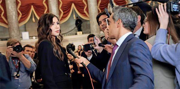 2月24日,接受采访的克里斯蒂·诺姆。图/视觉中国