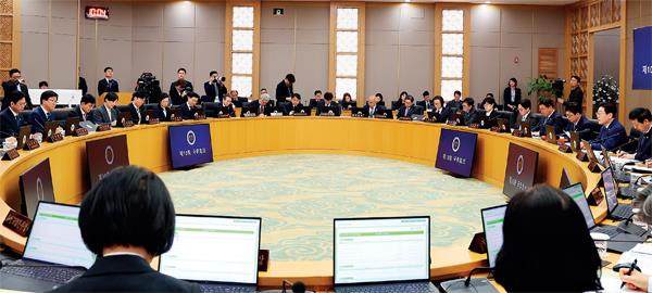 3月17日,韩国总统李在明在政府世宗办公室主持的一场国务会议。图/视觉中国