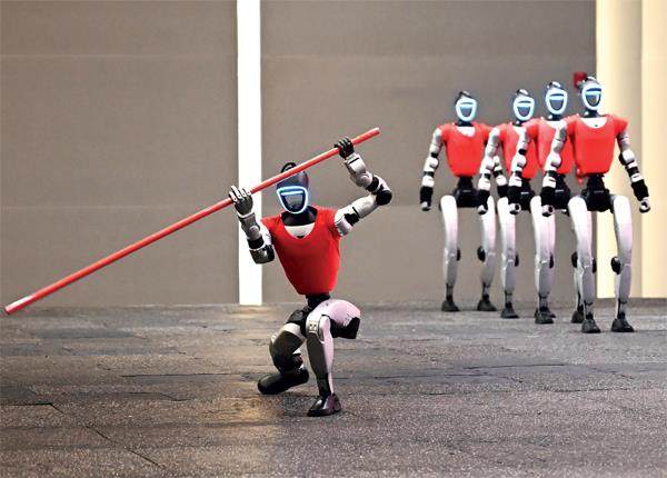 2月26日,浙江杭州宇树科技公司内,人形机器人进行武术表演。摄影/本刊记者 王刚