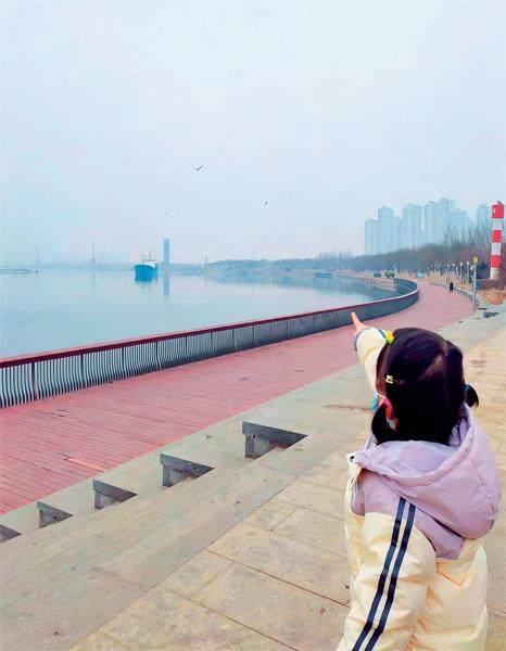 2023年底,张宝祥带女儿在天津市潮音寺前玩耍。本文图/受访者提供