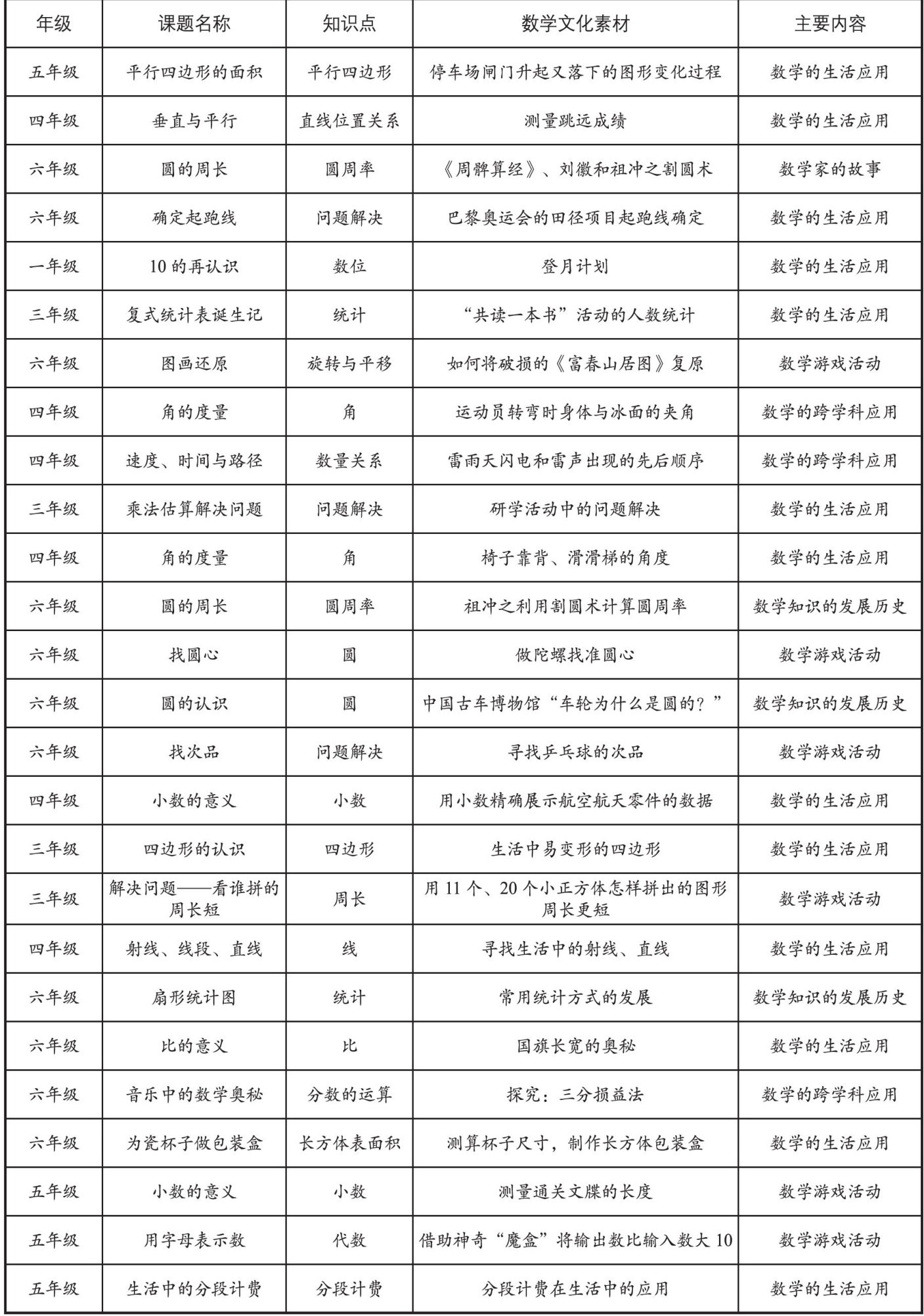 数学文化是指数学的思想、精神、语言、观点,以及它们的形成与发展;还包括数学在人类生活、科学技术、社会发展中的贡献和意义,以及与数学相关的人文活动。《义务教育数学课程标准(2022年版)》(以下简称“新课标”)在《课程性质》中指出,“数学承载着思想和文化,是人类文明的重要组成部分”;在《课程内容》中要求“关注数学学科发展前沿与数学文化,继承和弘扬中华优秀传统文化”;在《教学建议》中要求“注重情境素材的育人功能,如体现中国数学家贡献的素材,帮助学生了解和领悟中华民族独特的数学智慧,增强文化自信和民族自豪感”。(剩余4237字)