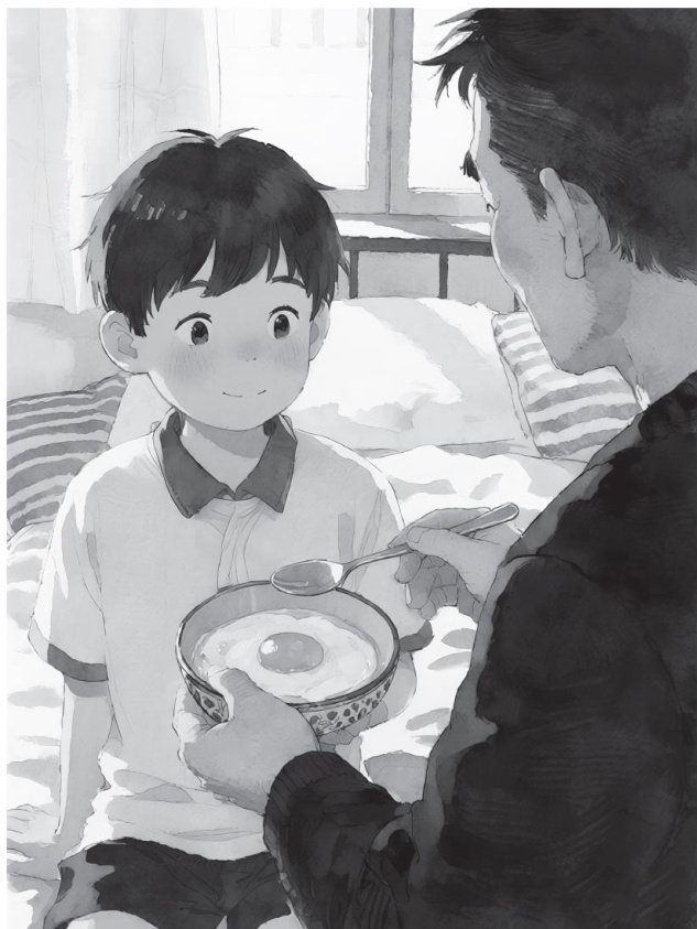 白瓷盅里的糖水荷包蛋正氤氩着热气将病房的玻璃蒙成毛月亮。父亲的白大褂下摆掠过门框,消毒水的气息在空气里游走一这便是我记忆中最具象的幸福。