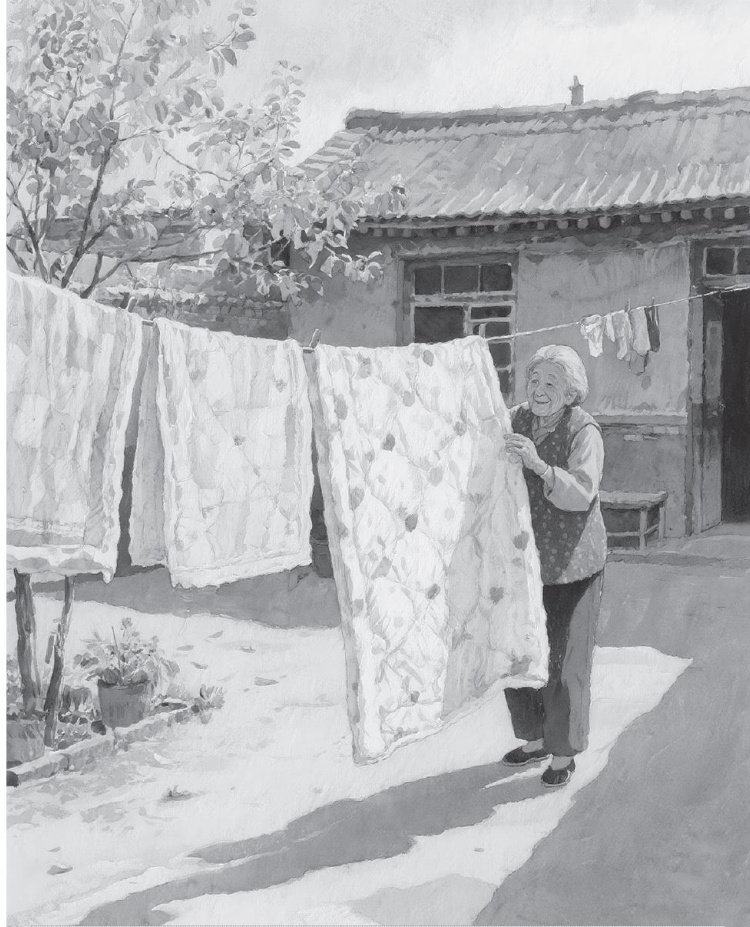 暑假回了老家,一进门,便见姥姥抱着一床被子,鍍步往院子里去。她将被子摊开搭在竹竿上,轻拍两下,那被子便如摊开的一张纸,松松垮垮地垂挂下来。我瞧着那被子,竟有几分微弱的苍白,仿佛也畏了这灼人的日光,晒蔫了身子。