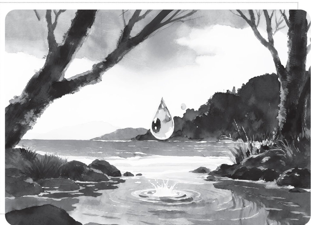 我是深山中的一滴水,年幼的我,还无法自由流动,只能静静地待在原地。我用那充满好奇的双眼,像探索神秘宝藏一般打量着这个世界。身旁的老者,声音低沉而又充满磁性,讲述着大海的故事。