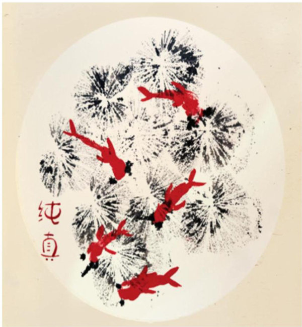 2.能够通过保鲜袋拓印莲叶、手部拓印小鱼、棉签添画等游戏方式,掌握简单的水墨拓印与点缀技法,锻炼手部协调能力与观察能力,感受水墨创作的趣味。