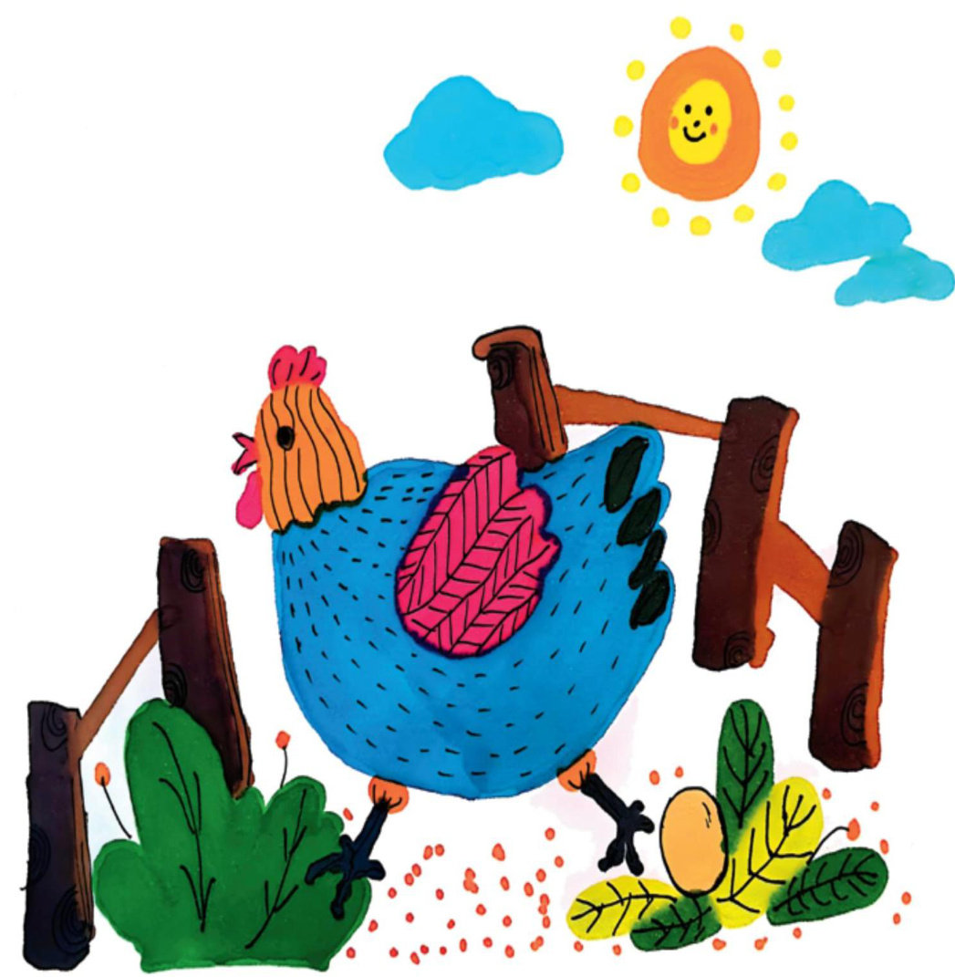 1."咯咯哒、咯咯哒——“清晨的阳光洒在了郊外的一个农场里,花母鸡抖了抖蓬松的羽毛,骄傲地宣布自己又下了一个蛋。
