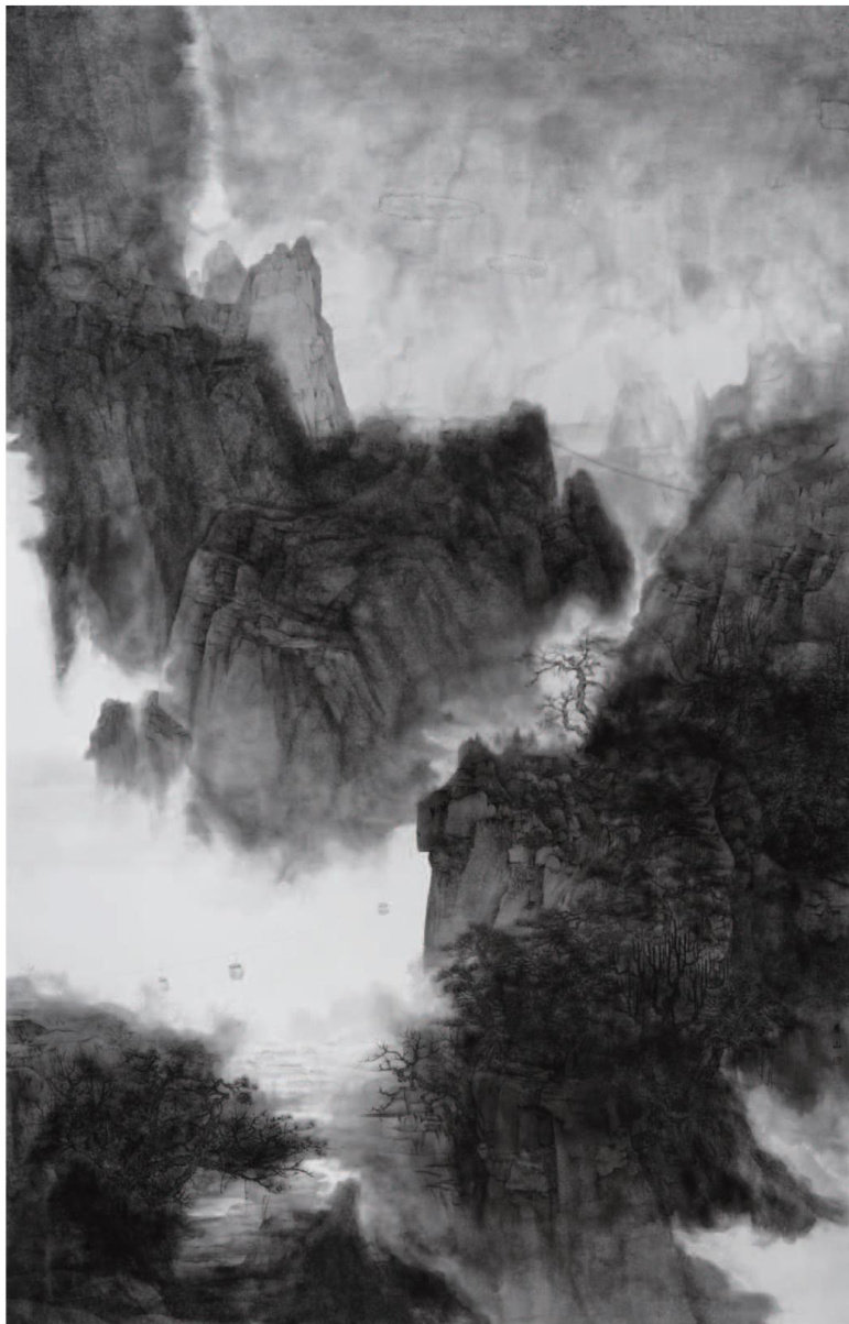 《幽壑入烟岚》是我对传统山水画中“幽深”与“空灵”之境的一次探索。创作根植于对大自然山水的体察与前人笔墨的研习,通过苦心经营与细腻微妙的墨色以及虚实相生的空间,试图捕捉深谷与云雾交融那一瞬间永恒的诗意一一那不是静止的风景,而是自然在呼吸、在低语的生动时刻。(剩余1080字)