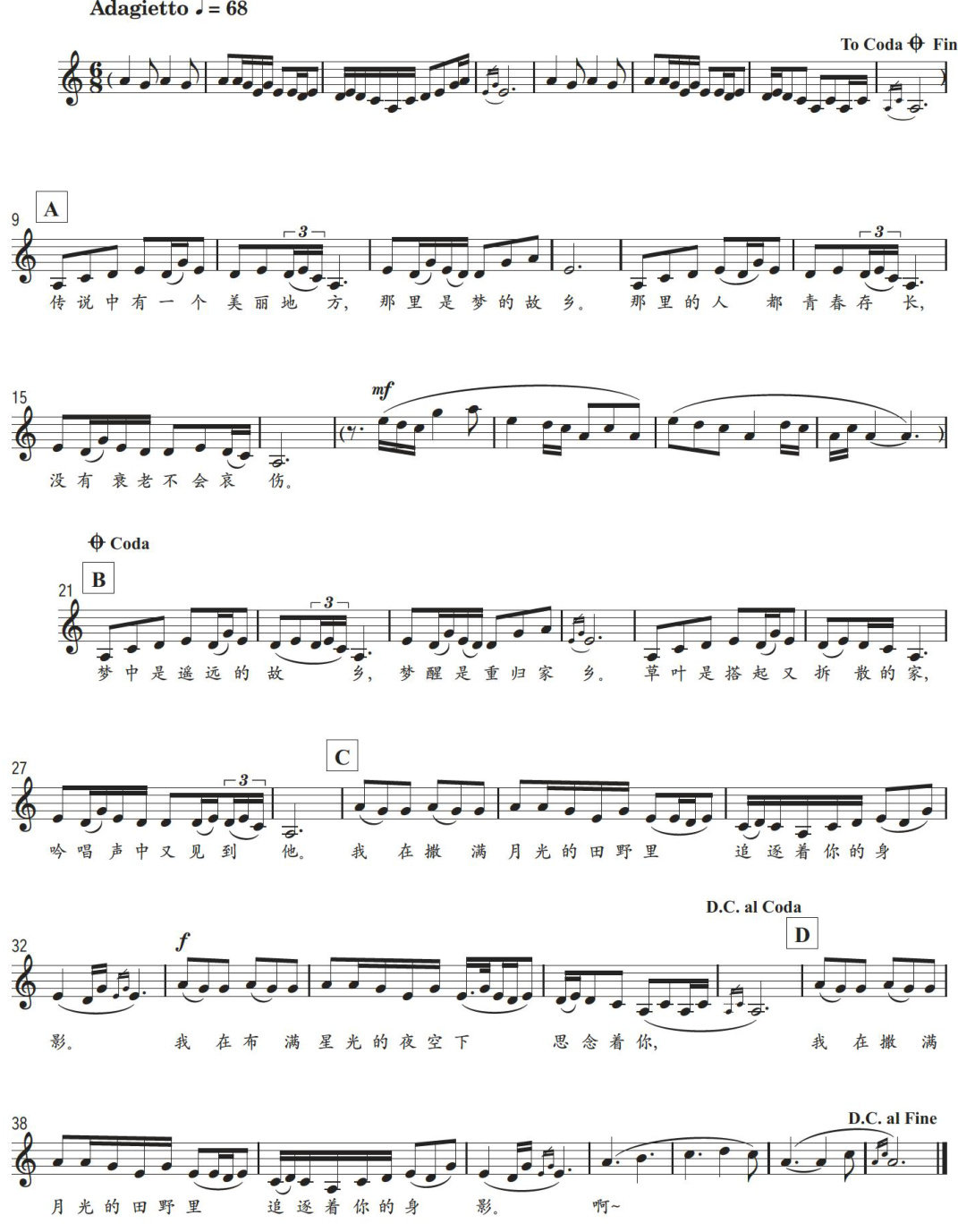 《本巴的世界》曲谱