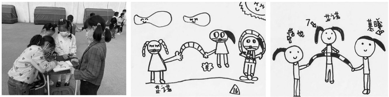 晨间活动中,幼儿们积极探索跳绳的各种花样与技巧。芷诺和悦馨想将此场景表征出来,于是便将两幅鲜活的跳绳图绘于纸上:在芷诺的画中,两名幼儿双人合作甩绳跳,一名幼儿单人夹球跳。(剩余3452字)