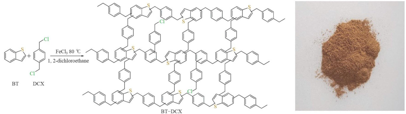 Abstract: There are cases of ilegal abuse of environmental estrogens (EEs) in the livestock,poultry and aquaculture industries. Quantitative detection of EEs in environmental and biological samples is the basis for supervising their application.Since the residual amount of EEs in environmental and biological samples is often trace or ultra-trace,and the coexisting components are complex, sample pretreatment methods aimed at enriching target compounds and purifying the matrix are particularly important. Based on the fact that the polar conjugated aromatic ring of benzothiophene (BT) may exert a strong affnity for EEs, BT was used as a monomer to synthesize the hypercross-linked polymer BT-DCX with a a′ -dichloro-p-xylene (DCX). A method for the determination of EEs was established by solid-phase extraction (SPE),high-performance liquid chromatography (HPLC) separation and ultraviolet (UV) detection using this polymer as the adsorbent. The saturated adsorption capacities of BT-DCX for three EEs ( 17β -E2,EE2 and DES) in methanol solution are 5.34 mg/g,2.17mg/g and 3.11mg/g , respectively. Under the optimal extraction conditions, the extraction recoveries of 17β -E2, EE2 and DES from 50mL of 0.08mg/L solution were 87.6% 96.2% and 92.2% ,respectively. After 10 repeated uses,the recovery rates of EEs showed no significant change, indicating good reusability. The established SPE-HPLC-UV analytical method has a linear range of 2.0-1000.0μg/L , a detection limit ranging from 0.4μg/L to 0.7μg/L , and intra-day and inter-day relative standard deviations (RSDs) of less than 6.1% This method has been successfully applied to the detection of EEs in complex matrix samples such as lake water,fish meat and chicken manure,with spiked recoveries ranging from 74% to 114% .The method is sensitive, stable,and the sample determination results are satisfactory.