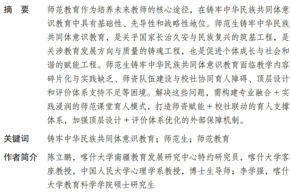 师范教育是“培养教育者的教育”,师范生铸牢中华民族共同体意识教育不仅是为了让师范生自身成为中华民族共同体意识的坚定信仰者,更是为了让他们成为这一理念的未来播种者,将“中华民族一家亲,同心共筑中国梦”的种子播撒下一代心间,最终凝聚起全民族共同团结奋斗、共同繁荣发展的磅礴力量。这既是师范教育的时代责任,也是中华民族伟大复兴的必然要求。(剩余6419字)