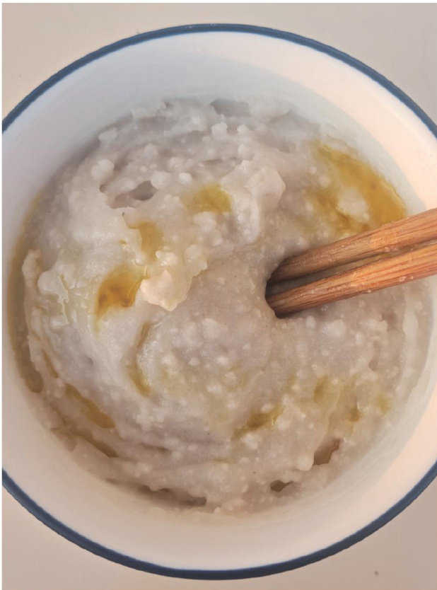 熟糯米粉子形似芝麻糊、豆浆粉,或是粗糙一些的小麦面粉,它以糯米为原料,经浸泡、沥干、炒制、碾磨等步骤制作而成,后两步较为关键。