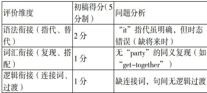 随着人工智能技术与教育教学的深度融合,智能化已成为推动学科教学提质增效的重要方向[l。在初中英语写作教学中,语篇衔接能力是衡量学生写作质量的核心指标,直接影响文本的逻辑性与可读性。很多时候,教师利用大量时间去批改学生作文,虽在单词、句型、语法协同方面进行了深人批改,但对学生作文广度与深度方面的评价仍有待深入。(剩余5061字)