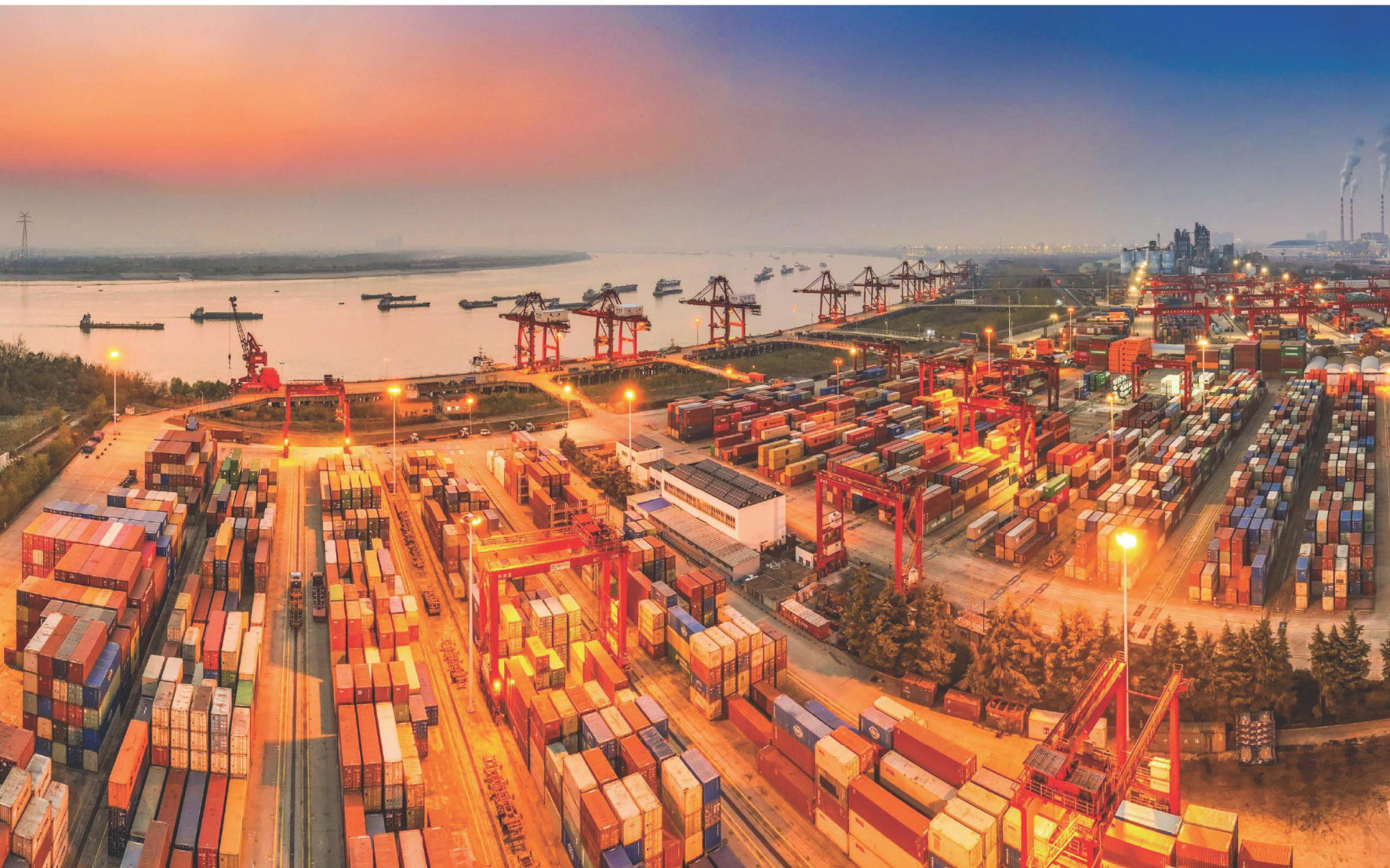 夜幕下,繁忙的武汉阳逻港国际集装箱码头。(支点记者薛婷摄)