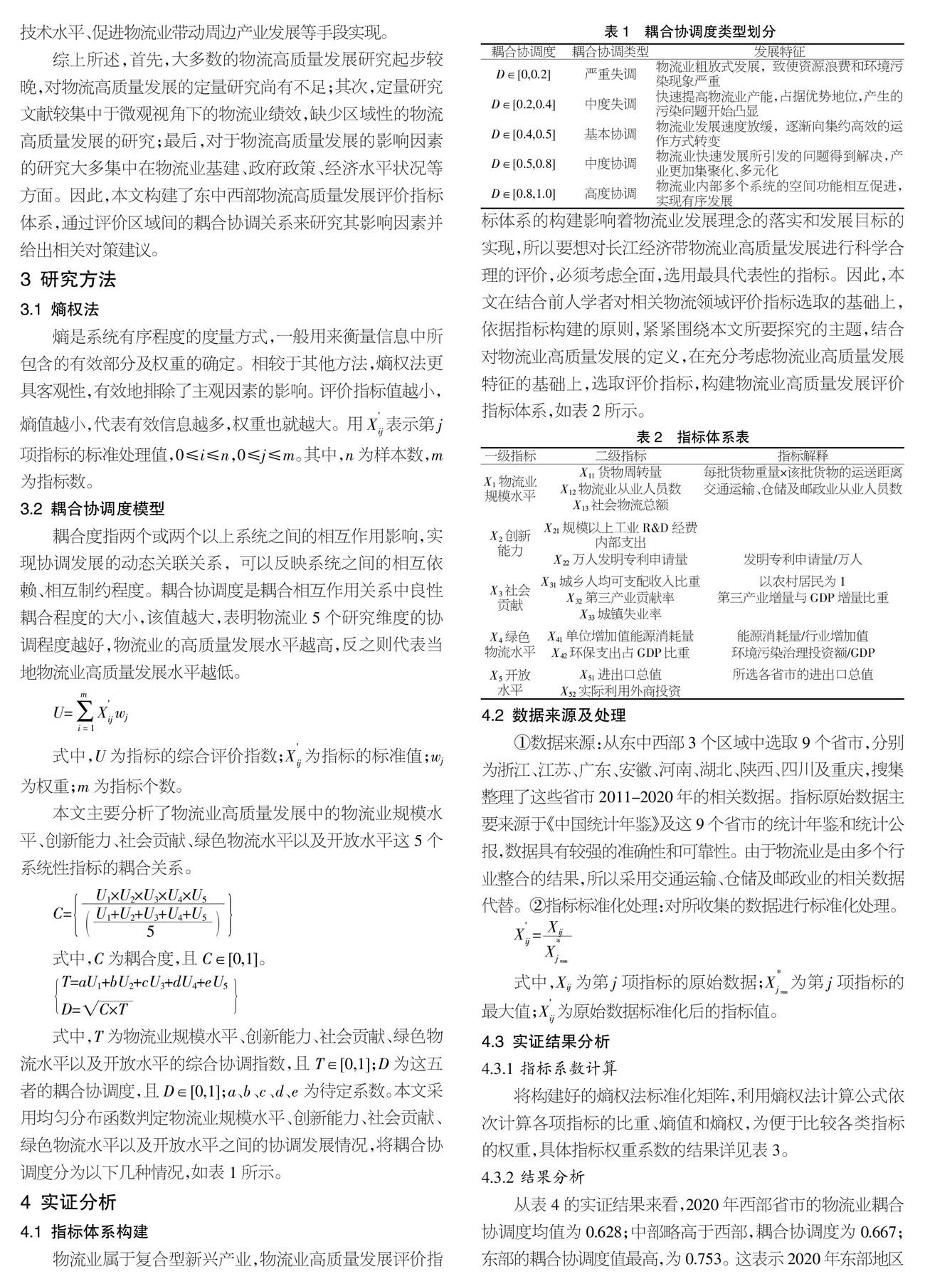 【关键词】高质量发展;物流;耦合协调