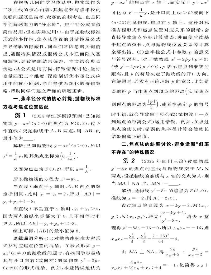 抛物线焦点弦问题:焦半径公式应用的常见逻辑漏洞