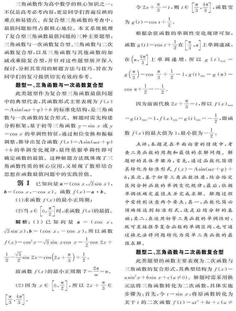 复合型三角函数最值问题的求解策略与路径探究