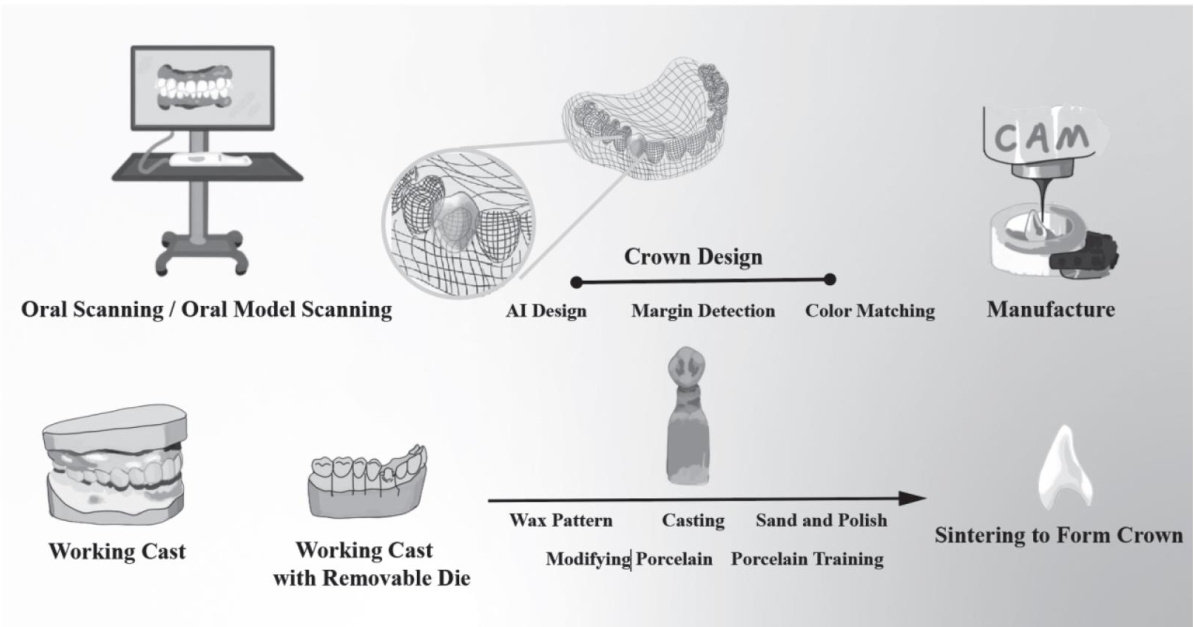 在过去二十年中,口腔修复体(尤其是牙冠)的设计经历了重大变革。传统方法,如实体印模和手工蜡型制作,正逐步被口内扫描以及计算机辅助设计与制造(CAD/CAM)等完全数字化流程所取代。与此同时,机器学习技术的进步拓展了人工智能(AI)的应用范围,为大规模修复体设计的自动化、标准化和个性化提供了可能。因此,近年来关于AI辅助牙冠设计的研究日益增多。(剩余5151字)