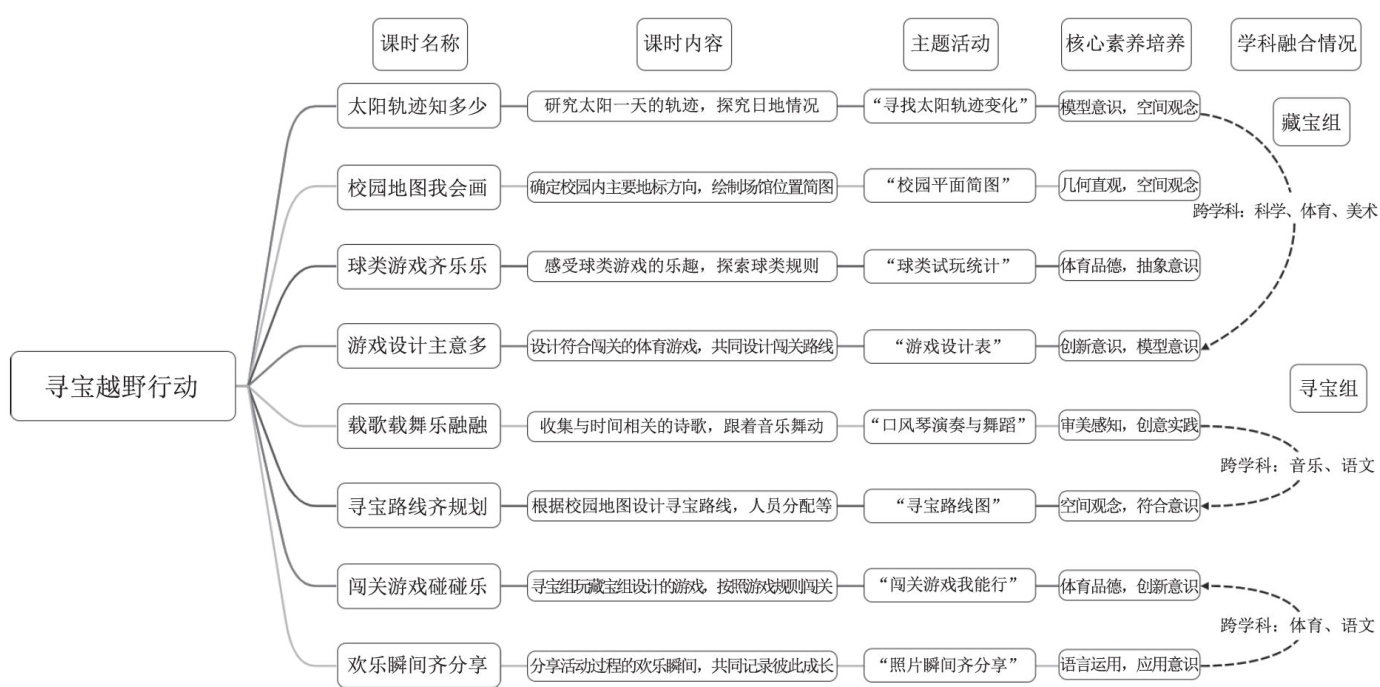 本课程以四年级开展的“定向越野”跨学科主题式活动为契机,在创设多个课时的主题式学习活动后,构建起位置确定的“生活化感知一跨学科融合一数学化表达一结构化应用”四个阶段的空间观念培养路径。该路径涵盖方向辨认与位置确定、地图绘制、描述路线等,以及单位长度的认识、线与角等几何知识融合的内容。实践研究证明,学生在基于前置实践铺垫的情况下,能够充分发挥自身的生活感知能力,其空间观念素养得到有效提升。(剩余4100字)