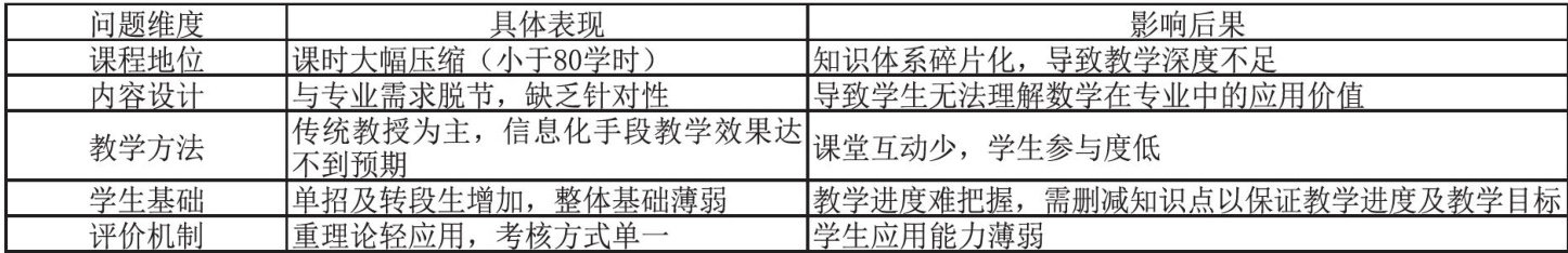 在中国特色社会主义新时代,特别是在职业教育高质量发展战略背景下,高等数学作为高职教育体系中的关键基础课程,其教学改革已成为提升技术技能人才综合素质的核心环节。当前,产业结构持续优化升级,科学技术飞速发展,数学思维与应用能力已成为现代职业人才不可或缺的基本素养。从精密制造到金融分析,从人工智能到生物医药,数学作为一门“看不见的技术”,已深度融入各行各业的技术创新与生产实践。(剩余6421字)