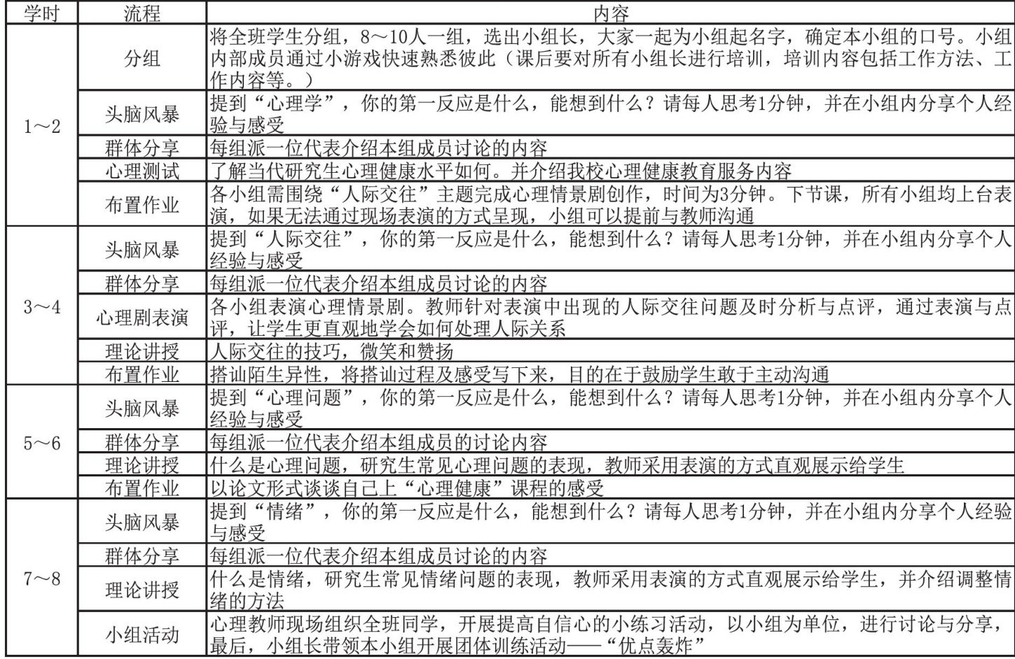 研究生群体在抑郁情绪、师生关系、科研和就业压力、自卑和社交恐惧等方面存在不同程度的心理问题。课程教学是高校开展心理健康教育的主渠道。研究者对辽宁省10所高校的调查发现, 70.5% 的学生认为开设“心理健康教育”课程非常有必要,23.4%的学生认为该课程吸引力一般,45.74%的学生认为该课程很没意思。(剩余5435字)