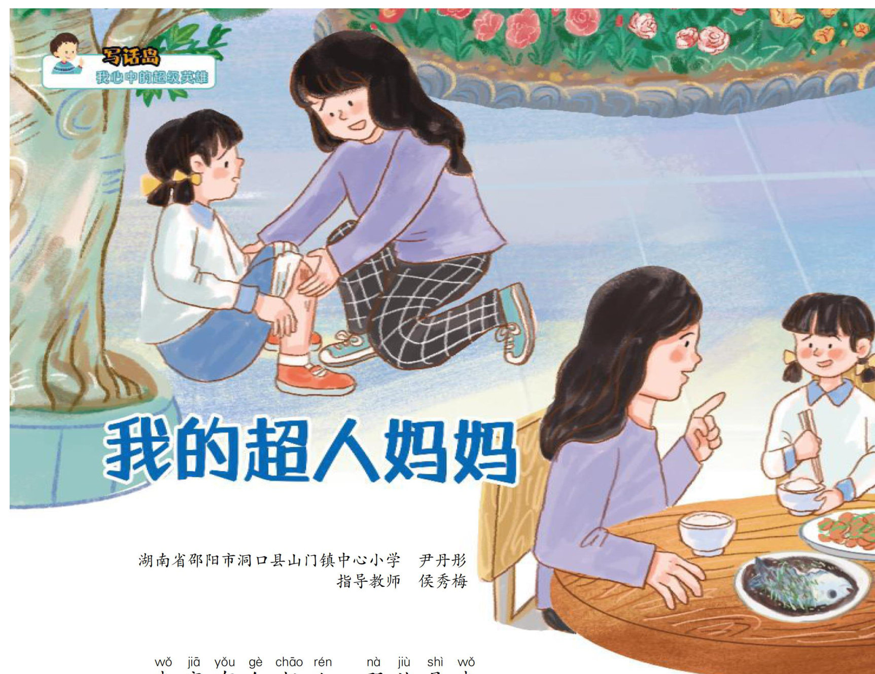 我家有个超人,那就是我de ma ma zhé gemi mi zhi you wzhi dao的妈妈!这个秘密,只有我知道mā maké mángle zāo shangtá xiangyizhén fengijimáng máng song 妈妈可忙了!早上,她像一阵风,急急忙忙送 wó shang xuéwan shangtayou zāi chu fanglizhuan lai zhuanqu bian chu haochi 我上学;晚上,她又在厨房里转来转去,变出好吃 defancai wo cháng chang xiangma ma yao shi huiféishibu shijiubu yong zhe 的饭菜。(剩余1172字)