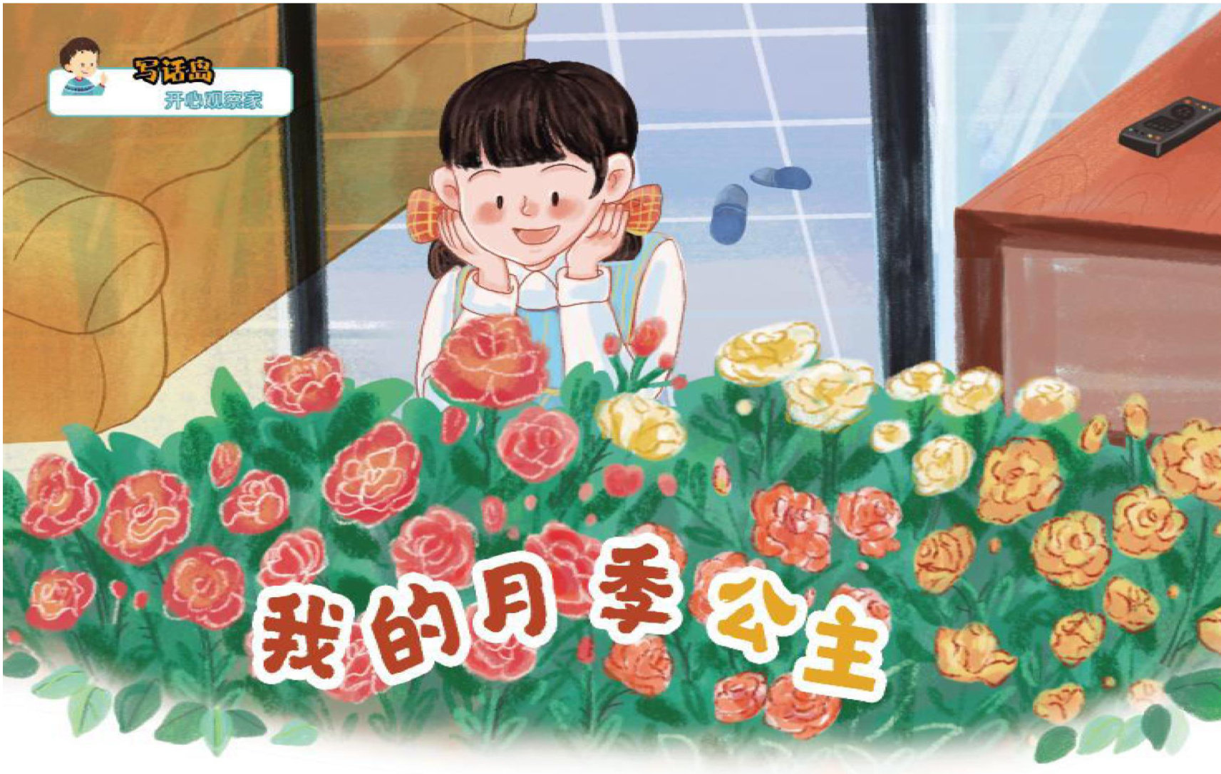 shang zhoubaba bān huilaisipén yuejihualiang pen hóng de xiang rán shāode 上周,爸爸搬回来四盆月季花,两盆红得像燃烧的 xiàotāi yángliāng pén huang de xiang näi you dān gāo baizāiyang tai shang tebie piao liang 小太阳,两盆黄得像奶油蛋糕,摆在阳台上特别漂亮! wδ dun xid shencou jinzixi guan chayuei de jingxi xi dexiang qianbi 我蹲下身,凑近仔细观察。(剩余1512字)