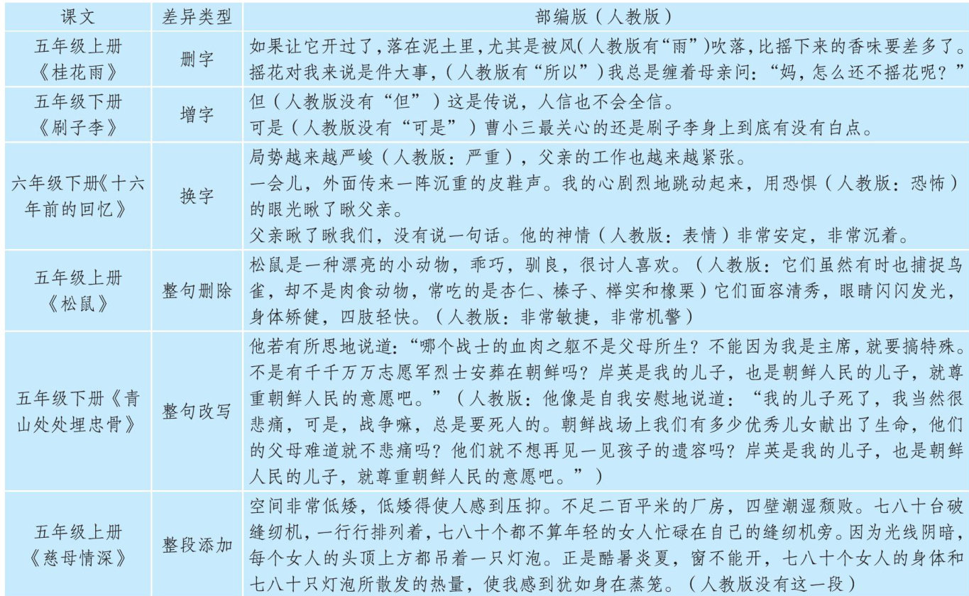 人教版与部编版小学语文高年级课文相同篇目比较研究