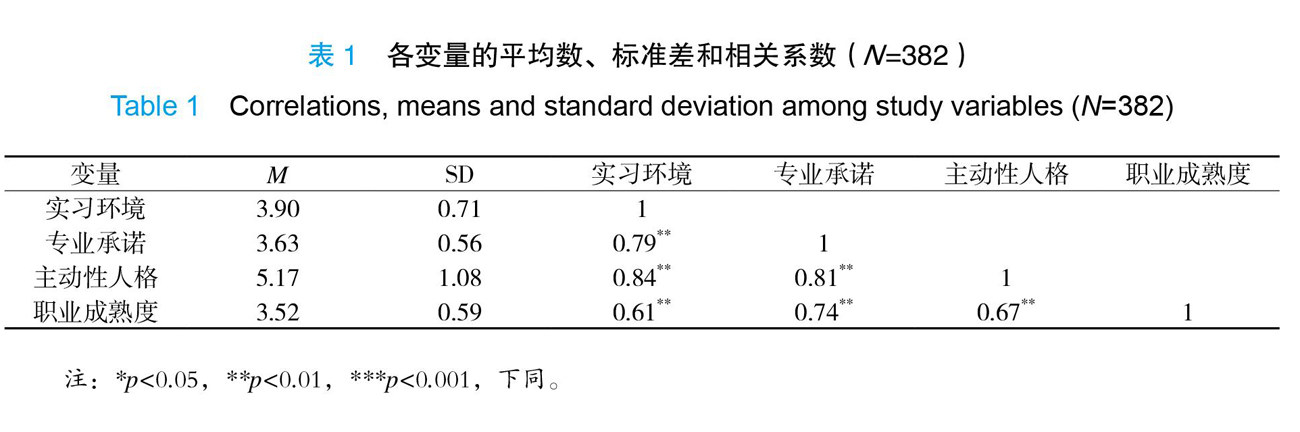 实习环境与师范生职业成熟度的关系:专业承诺和主动性人格的作用