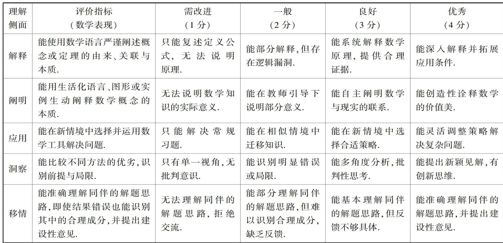 基于“理解六侧面”的高中数学评价量规设计与实践反思