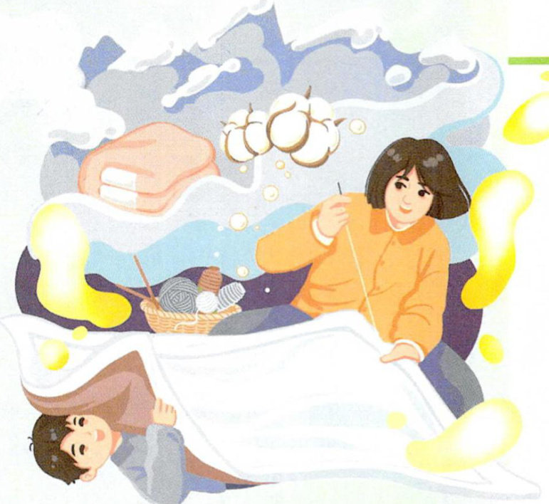 她从楼上取下来一张竹席,摊在地上。把外面晾衣绳上的棉套、被里、被面抱回来,在竹席上铺开,细细缝起来。
