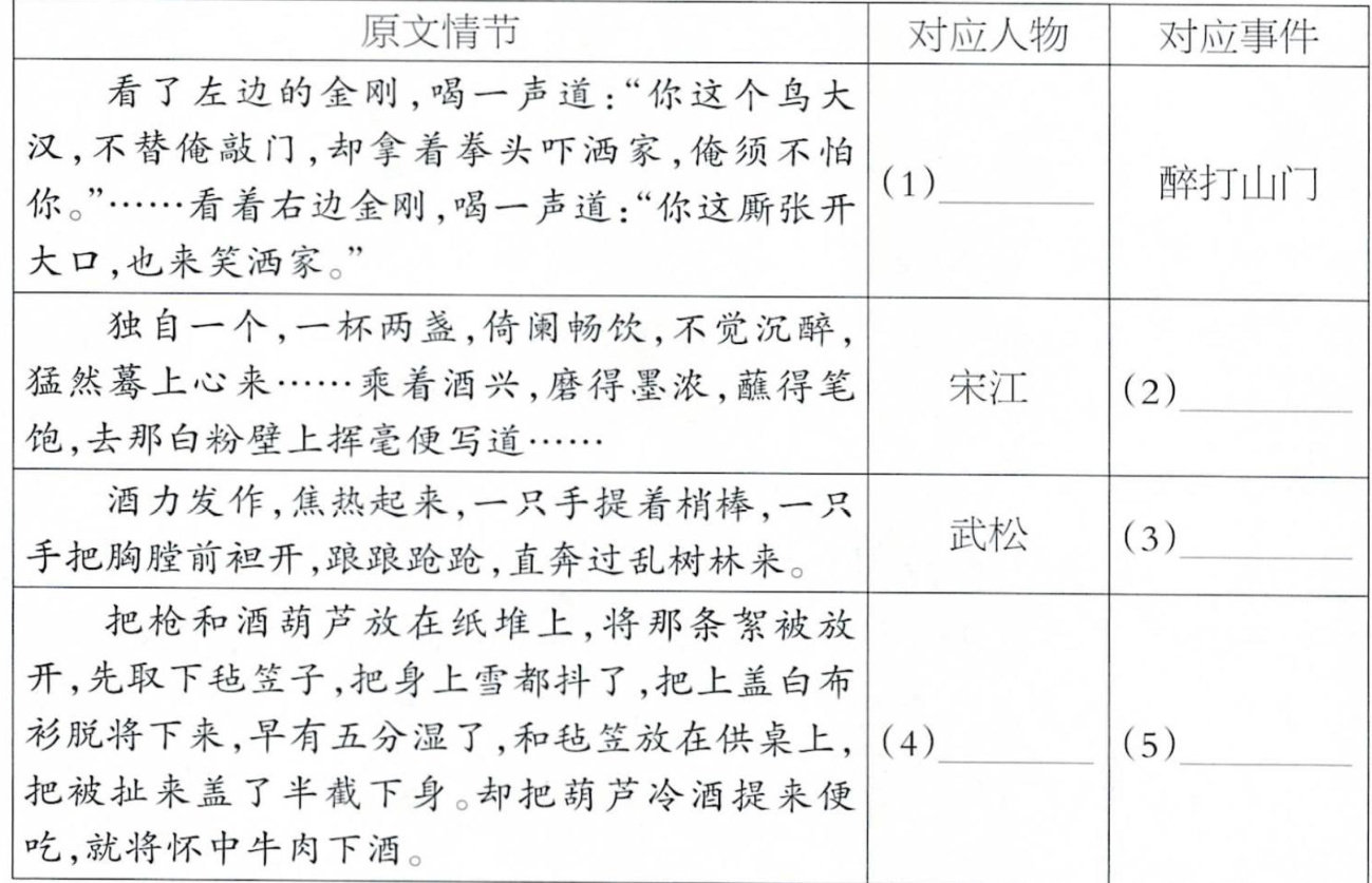 1.请结合下列《水浒传》中人物饮酒的情节,按照示例,将表格补充完整。