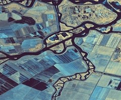 图为“海哨一号”卫星于2024年12月8日在美国加州圣华金县所拍摄到的SAR双极化伪彩色合成影像,展示了圣华金县局部地区的农田与河流。 图片来源:《遥感学报》封面...