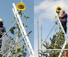 向日葵根系发达,茎秆挺拔,花盘灿烂,被誉为“最富魅力的植物”之一。你知道吗?世界上最高的向日葵名叫“三叶草”,长到了‌10.90米‌,大约有三层楼高,花盘直径堪比自行车车轮。由于茎秆支撑不住花盘,主人专门搭了三层支架。“三叶草”是美国印第安...