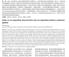 凝析油管道蜡沉积特性及蜡沉积模型研究