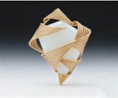 作者简介: 魏海春,硕士,。研究方向:珠宝首饰设计。 设计说明: 本款胸针以“心脏”为核心灵感来源,以抽象的几何切割与流动线条诠释“心心相印”的亲密关系。中间镶嵌的多边形白玉象征爱情的纯洁与坚韧,其通透质感透过花丝间隙折射出柔和光晕,恰似情...
