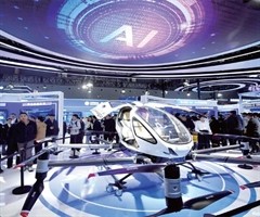 2025年10月17日,观众在2025中国国际数字经济博览会上了解一款可载人飞行器(王晓/摄)2026年政府工作报告首次提出“打造智能经济新形态”,并提出深化拓展“人工智能+”,促进新一代智能终端和智能体加快推广,推动重点行业领域人工智能商...
