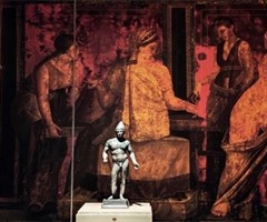 青铜小雕像陈列在复制的庞贝室内壁画前。本文摄影/本刊记者 倪伟 已经重现人间近五百年的庞贝古城,至今仍不断有新的惊喜诞生。 2024年,庞贝古城里发现了一座大宴会厅,墙上绘有特洛伊神话壁画;2025年面世的一面墙壁上,绘着巨幅酒神狄俄尼索斯...