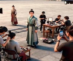 AI插画/adan 9岁小演员航航被打扮成“小大人”模样:头发用卷发棒烫出卷曲弧度,穿着一件蓝色格纹衬衫。按照剧本的要求以及导演的示范,当他看到面前五个二十多岁的“长腿美女”未婚妻时,他的眼神瞬间“拉丝”,嘴角直流口水。 在郑州一个短剧片场...
