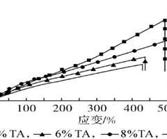 摘要:采用冷冻循环的方法制备了不同单宁酸(TA)含量的水凝胶,对比分析了TA含量对水凝胶红外光谱、X射线衍射图谱、显微形貌和拉伸力学性能的影响。结果表明,TA质量分数的提高会使得用于传感器的水凝胶的断裂强度提高,断裂应变先增大后减小;当TA...